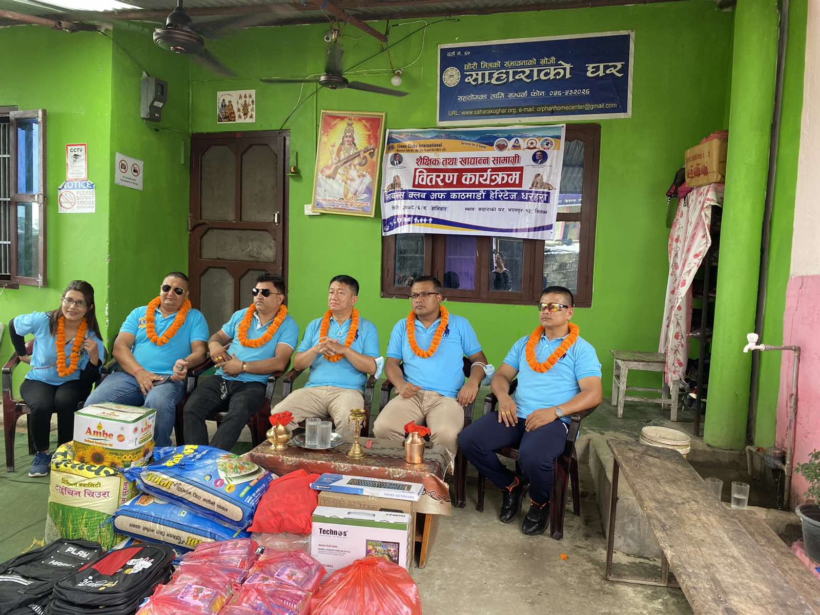 साहाराको घरमा रहेका १८ जना बालबालिकालाई पुग्ने चामल, दाल, चिउरा, तेल लगायत खाद्यान्न तथा कम्युटर लगायत शैक्षिक सामाग्री वितरण गरिएको क्लबका अध्यक्ष लायन शक्ति श्रेष्ठले जानकारी दिनुभयो ।