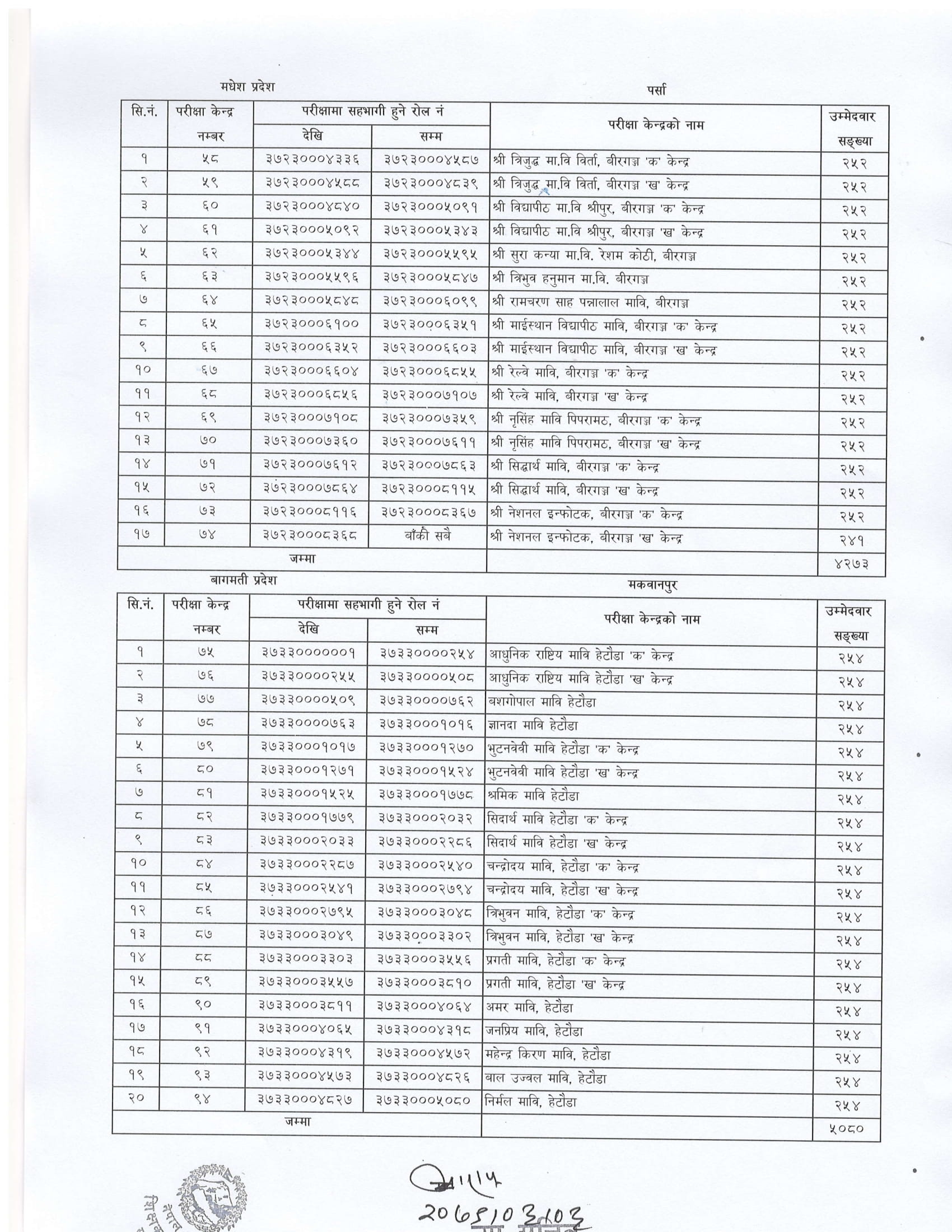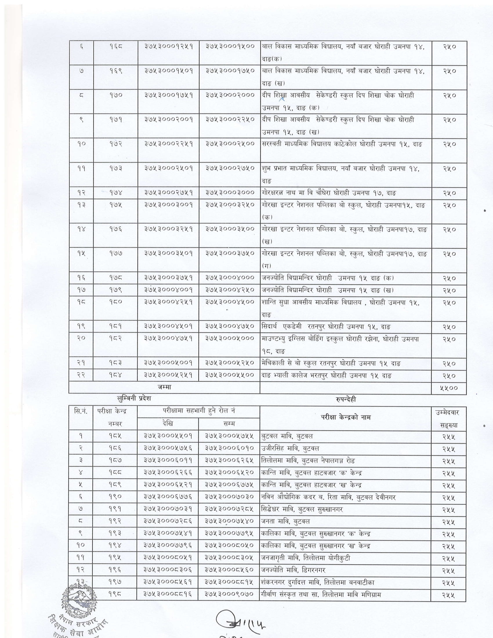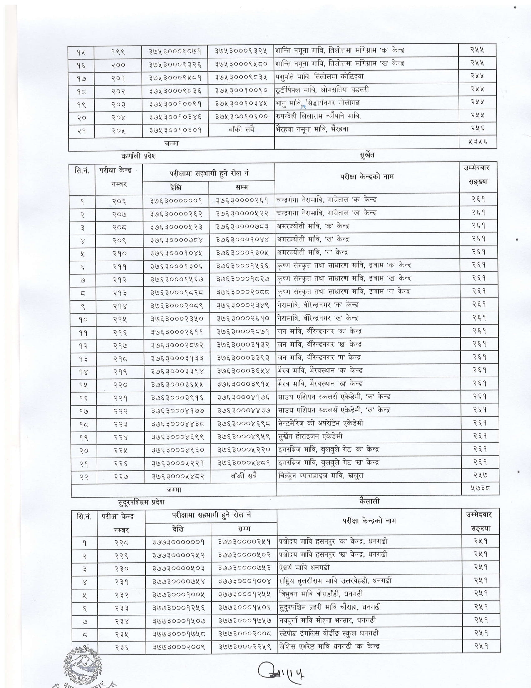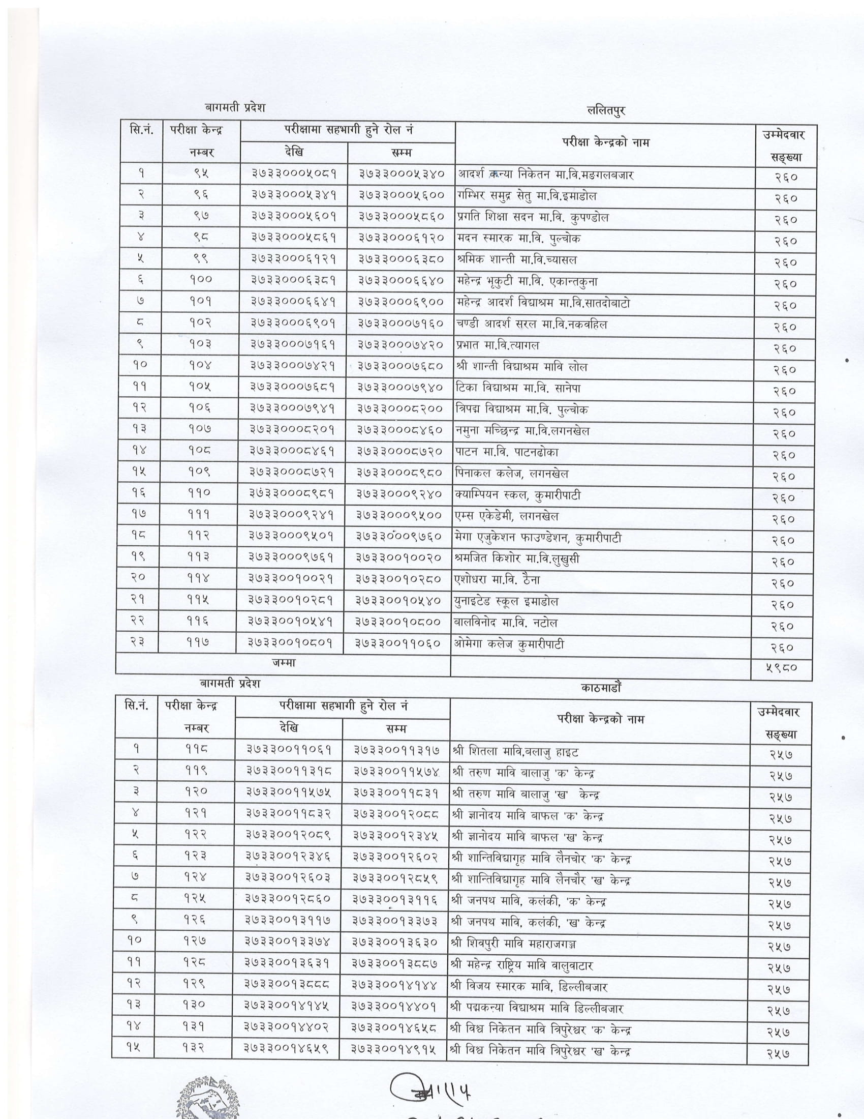 विहान ८ बजेदेखि सञ्चालन हुने लिखित परीक्षाको केन्द्र निर्धारण गरेको हो ।