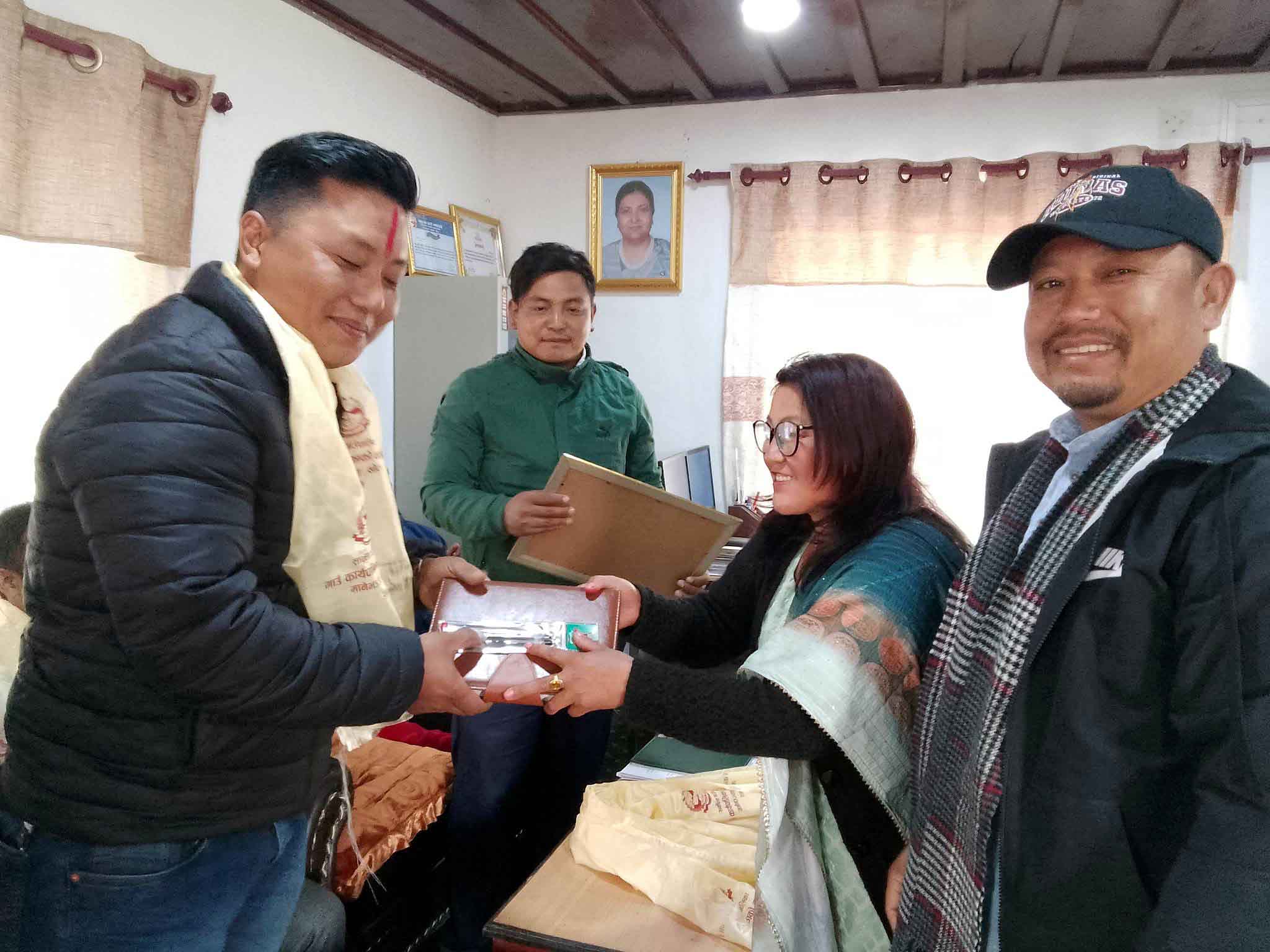 प्रत्येक वडा र टोल तथा बस्तीस्तरमा पुगेर खाता सञ्चालन, भत्ता वितरण लगायतको कार्य सहज तरिकाबाट सम्पन्न गर्न प्रबन्धक लिम्वुले खेल्नुभएको भूमिका अतुलनीय भएको बताउँदै अध्यक्ष राईले आगामी दिनमा बैंक सँगको सहकार्य सुमधुर बनाई सेवा प्रवाहलाई फराकिलो पार्न नयाँ आउनुभएको प्रबन्धकलाई आग्रह गर्नुभयो ।
