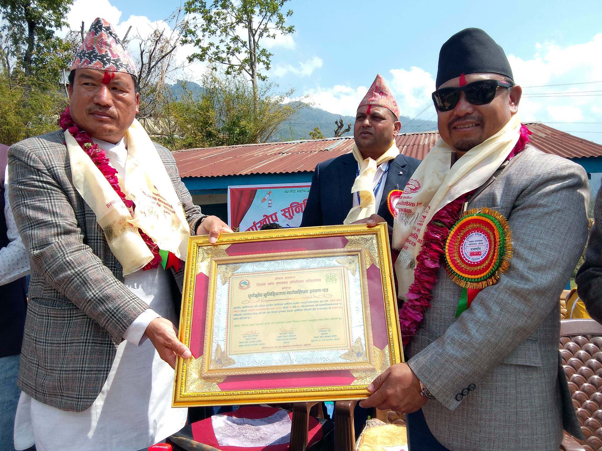 बिहीबार साकेला गाउँपालिका-२, रतन्छामा आयोजित कार्यक्रममा जिल्ला समन्वय समिति प्रमुख सन बहादुर राई, साकेला गाउँपालिकाका अध्यक्ष रवि प्रकाश राई, जिल्ला स्वास्थ्य कार्यालय खोटाङका प्रमुख पुण्य प्रसाद सिग्देल लगायत जनप्रतिनिधि, स्वास्थ्यकर्मी तथा अन्य उपस्थित नागरिकहरुले पूर्ण खोप सुनिश्चितता घोषणा प्रतिवद्धता पत्रमा हस्ताक्षर गरेपछि औपचारिक रुपमा पालिकालाई पूर्ण खोप सुनिश्चित भएको पालिका घोषणा गरिएको हो ।
