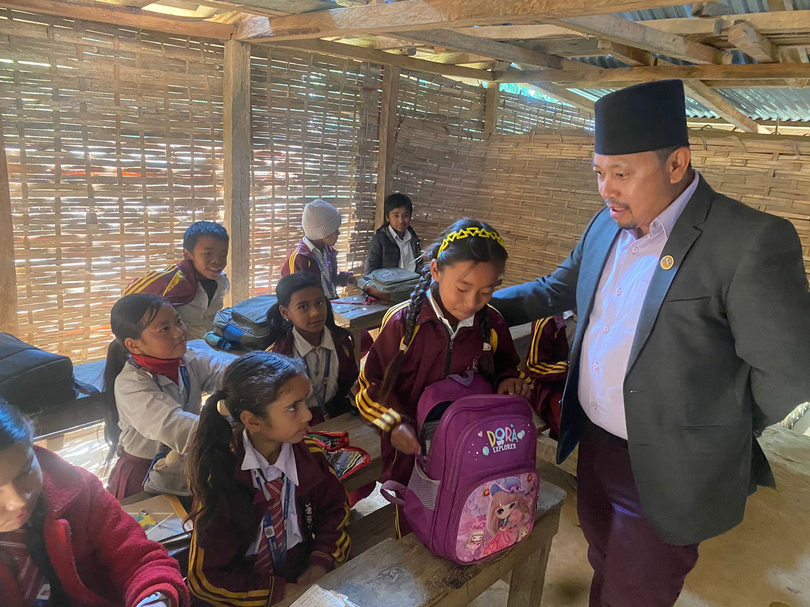 नेपाल अधिराज्यभरीबाट छनौट भएको ठूला विद्यालय योजना अन्तर्गत पाँच वटा विद्यालयहरु मध्ये छनौट भई निर्माण सुरु गरिएको १२ कोठे पक्की भवनको अनुगमन गर्नुभएको हो । लामो समयसम्म ब्रिटिश आर्मीमा कार्यरत रहि सेवा निवृत्त हुनुभएका गाउँपालिका प्रमुख राई र विद्यालयको पहलमा उक्त योजना मार्फत सो विद्यालय छनौट भई निर्माण सुरु गरिएको हो । कूल २ करोड ८५ लाख ५८ हजार १३३ रुपैंयामा सो भवन निर्माण हुनेछ ।