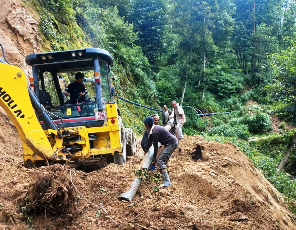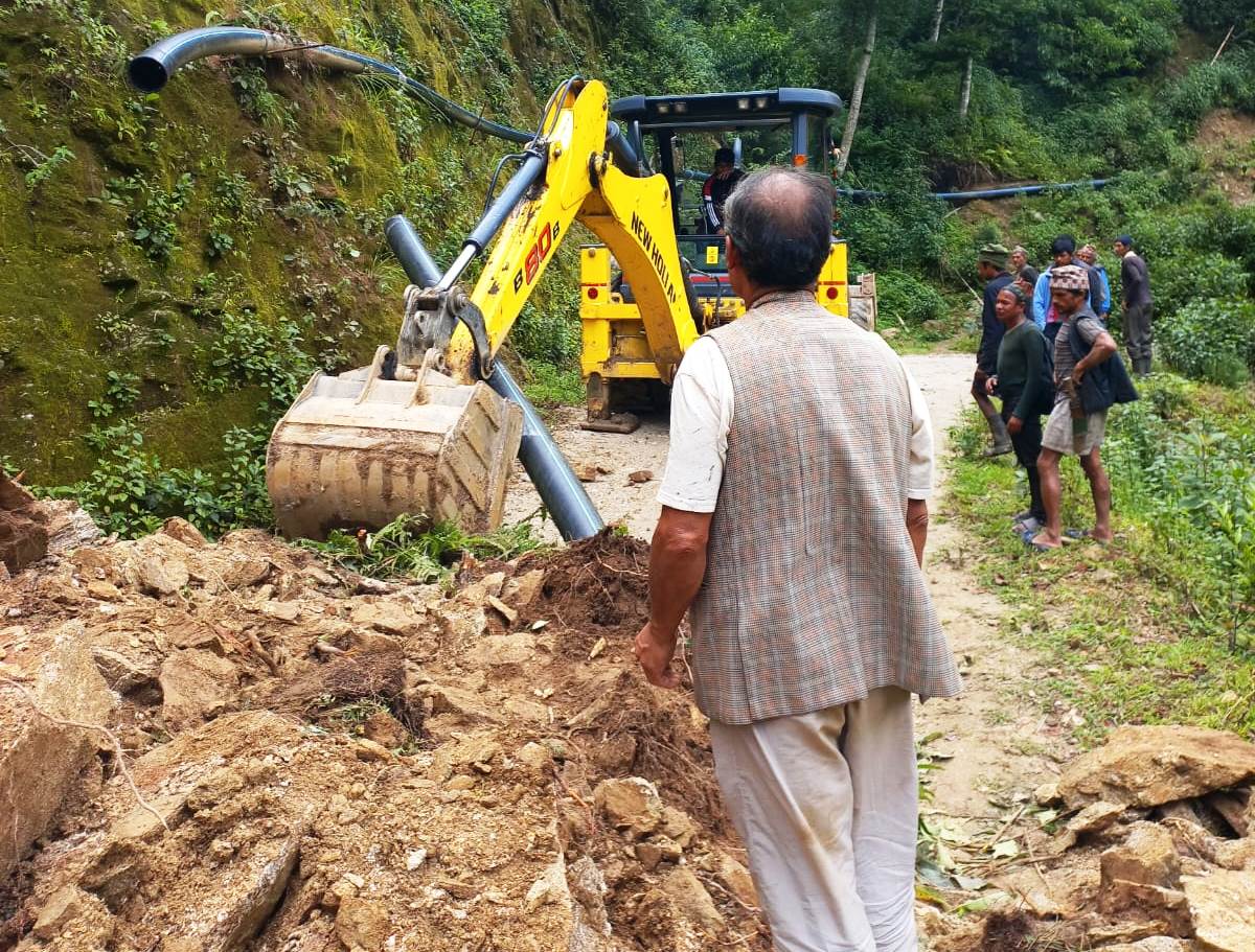 यसैबीच, लगातारको झरीका कारण अवरुद्ध बनेको बाँझेच्यानडाँडा-रतन्छा-मानेभन्ज्याङ सडक खण्ड अन्तर्गत रतन्छा र साब्जुखोला क्षेत्रमा समेत पालिकाको मेसिन प्रयोग गरि बाटो खुलाईएको छ । बिहीबार बिहानैदेखि पालिकाको मेसिन उक्त क्षेत्रमा पुगेर सडकको अवरोध हटाएको हो । गाउँपालिकाले अवरोध खुलाउनको लागि तत्काल आफूसँग उपलब्ध भएको साधन सो क्षेत्रमा पठाएर आफ्ना नागरिकलाई सुविधा प्रदान गर्दै आएको छ ।