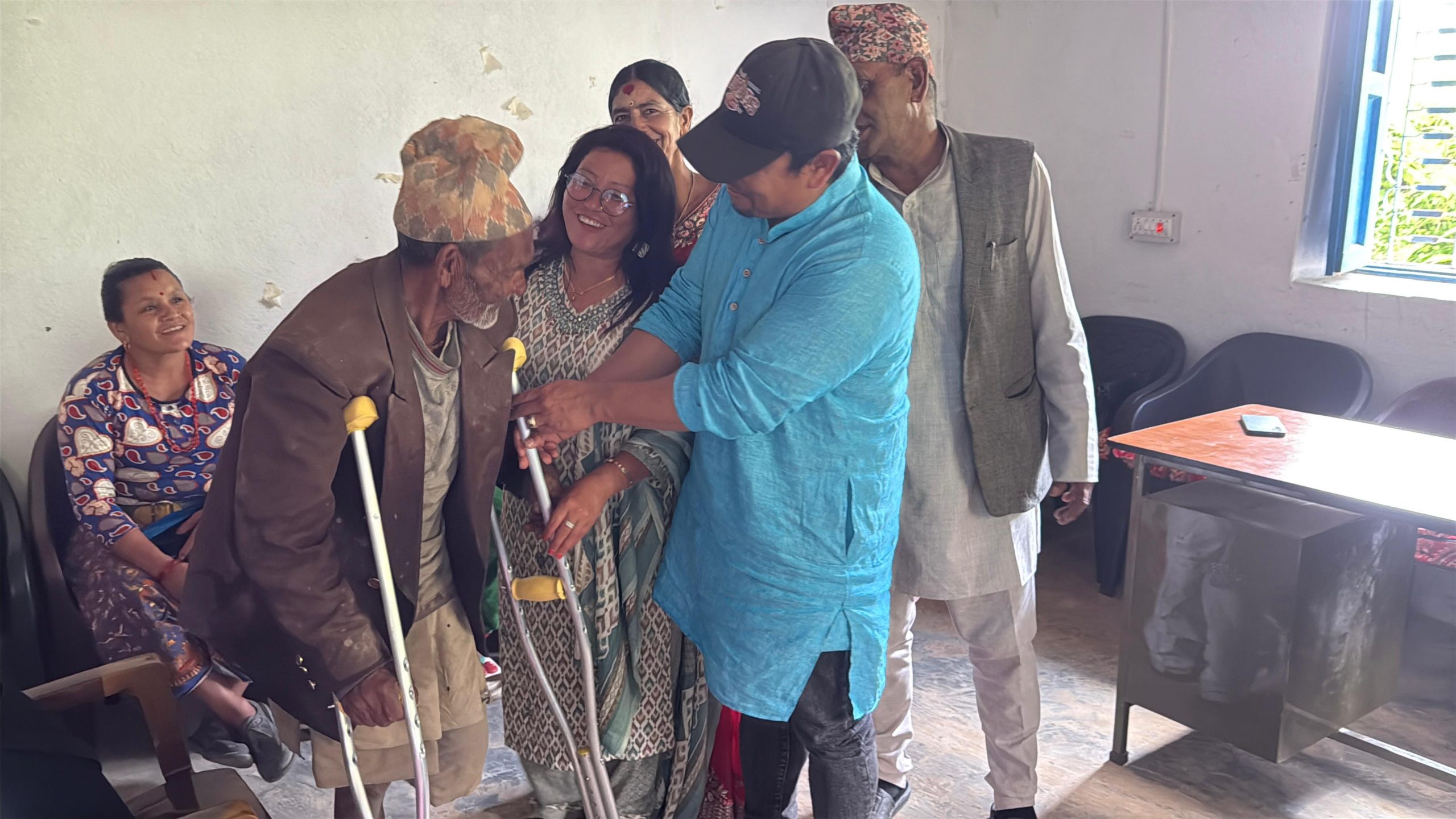 आईतबार अध्यक्ष राईले वडा नम्बर ४ मात्तिमका अपाङ्गता भएका नागरिकहरुलाई (छडी) लाठ्ठी, श्रवणयन्त्र र हिँडडुल गर्न प्रयोग हुने कुईनो वैशाखी र ह्वीलचेयर समेत वितरण गर्नुभएको छ । सबै प्रकारका नागरिकहरुको सहजताका लागि विभिन्न गतिविधि सञ्चालन गर्दै आएको पालिकाले वडा कार्यालयमा एक कार्यक्रमको आयोजना गरि उक्त सहायक समाग्रीहरु वितरण गरिएको हो । बाँकी अन्य दुईवटा वडाहरुमा पनि केहीदिनभित्रै कार्यक्रमको आयोजना गरि सहायक समाग्री वितरण गरिने बताईएको छ ।