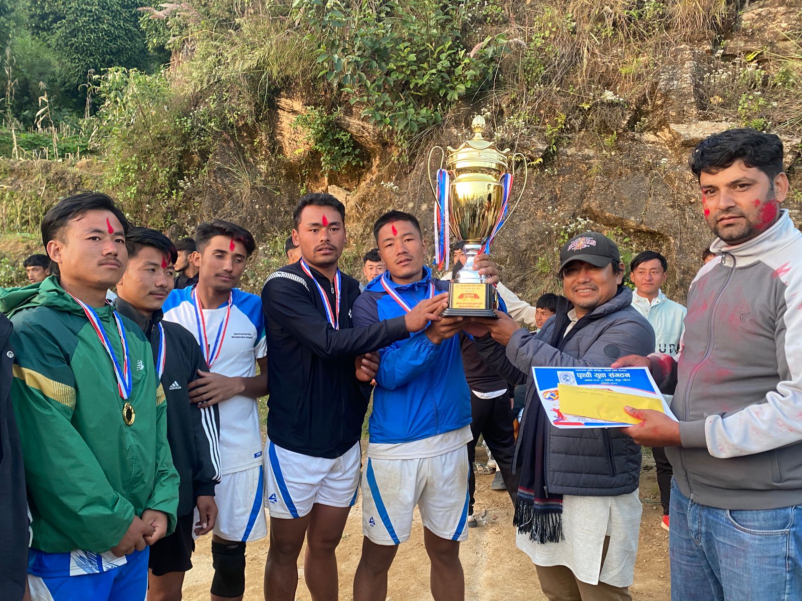 साकेला- खोटाङको खिदिमास्थित बोपुङमा सञ्चालित साविकको वडा स्तरीय पुरुष भलिवल प्रतियोगिता उपाधि दिप्रुङ चुईचुम्मा-७ टेम्मा गोपीले चुमेको छ । प्रतिस्पर्धि भोजपुर माटिकोरेको टोलीलाई पछि पार्दै गोपीले प्रथम स्थान हाँसिल गरेको हो । चाडवाडलाई लक्षित गरि स्थानीय पृथ्वी युवा सङ्गठन साकेला-३ बोपुङद्वारा गत बिहीबारदेखि आयोजना गरिएको भलिवल प्रतियोगिता आज सम्पन्न भएसँगै प्रथम हुने टोलीले नगद ३० हजार रुपैंयाको साथमा शिल्ड, मेडल र प्रमाणपत्र प्राप्त गरेका छन् ।